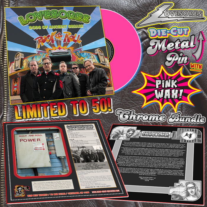 Lovesores- Gods Of Ancient Grease LP ~CHROME BUNDLE W/ PINK WAX + CHROME DIE-CUT PIN!