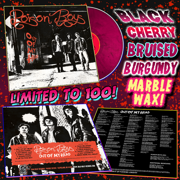 Poison Boys- Out Of My Head LP ~BLACK CHERRY BRUISED BURGUNDY MARBLE WAX LTD TO 100!